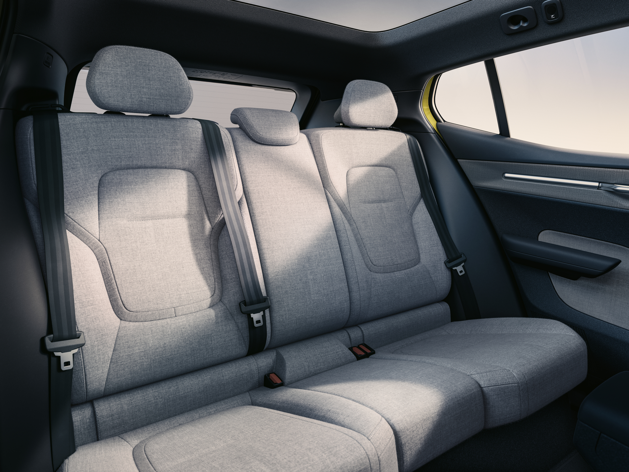 Trots fokus på ergonomi och stöd är inte framsätena klumpiga. Deras tunna profil harmoniserar med den minimalistiska designstrategin och bidrar till att förbättra benutrymmet för passagerare i baksätet.