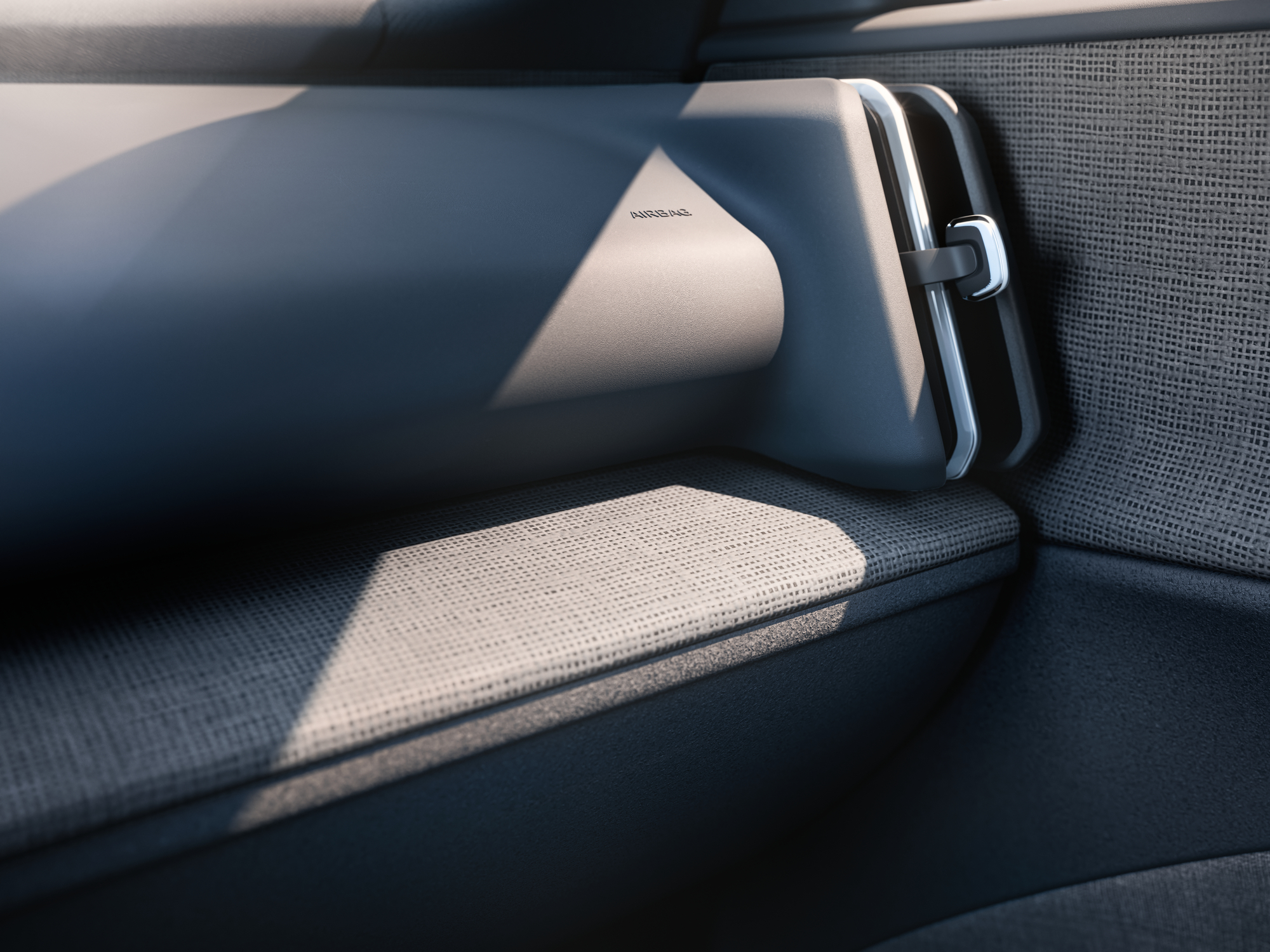 Volvo EX30 har en stilfull interiör med ett tydligt hållbarhetstänk med omsorgsfullt framtagna material som framhäver bilens distinkta design. Den ansvarsfullt framtagna designen symboliseras av återvunna och förnybara material som denim, lin och ullblandning i ett flertal olika färger och texturer.