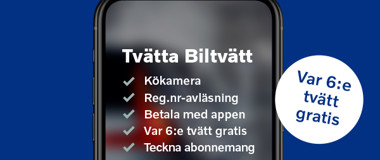 Få 50 % rabatt på första tvätten du genomför med Tvätta Biltvätt på våra Tvätta som är anslutna till appen.